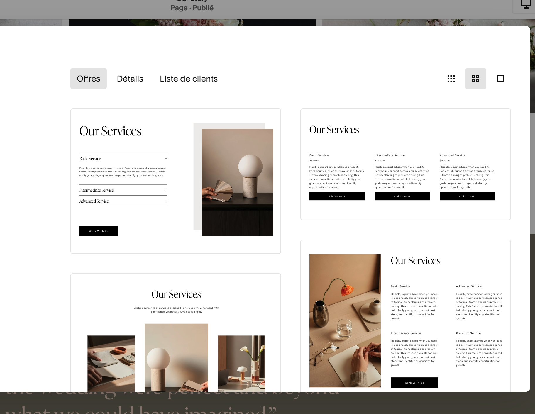 Design templates (I usually start from scratch with my clients but you can create based on a template too)