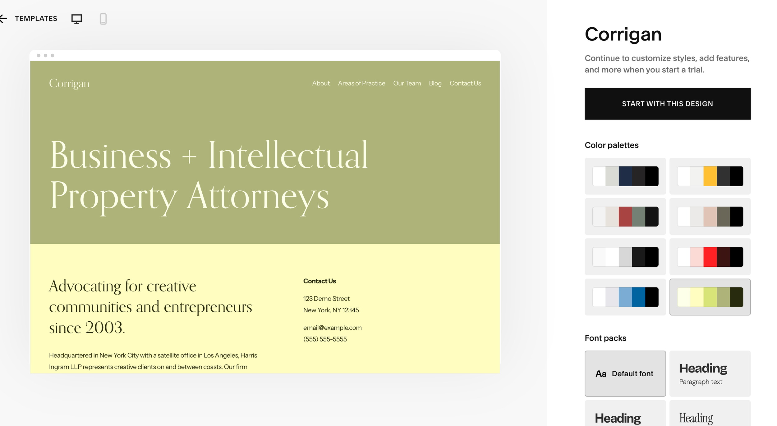 Example of Squarespace here we can see that the colors and fonts are all custom. You can easily change your colors to match your brand in seconds.